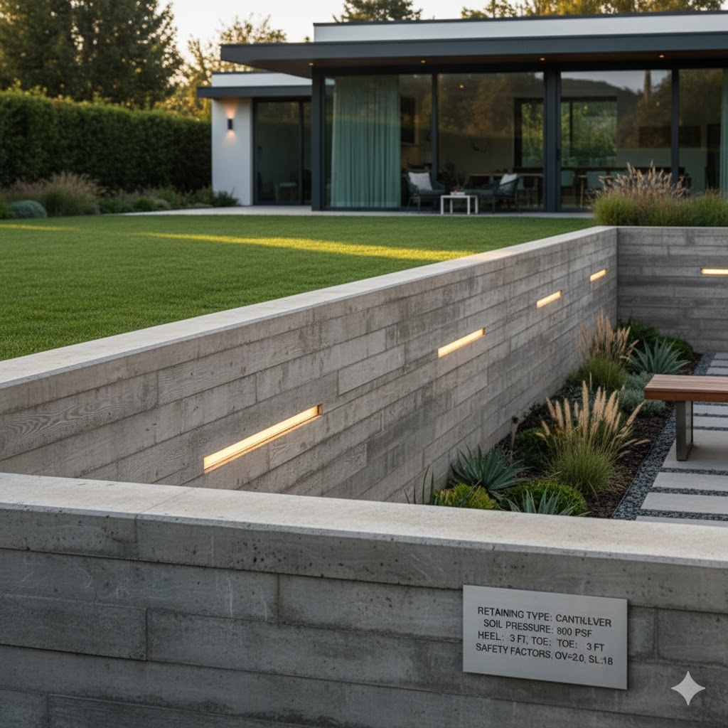 Calculate critical safety factors for retaining walls, including overturning and sliding resistance. Ensure your designs are robust and compliant.